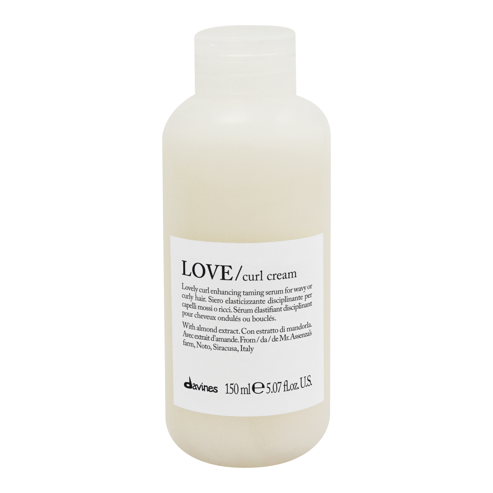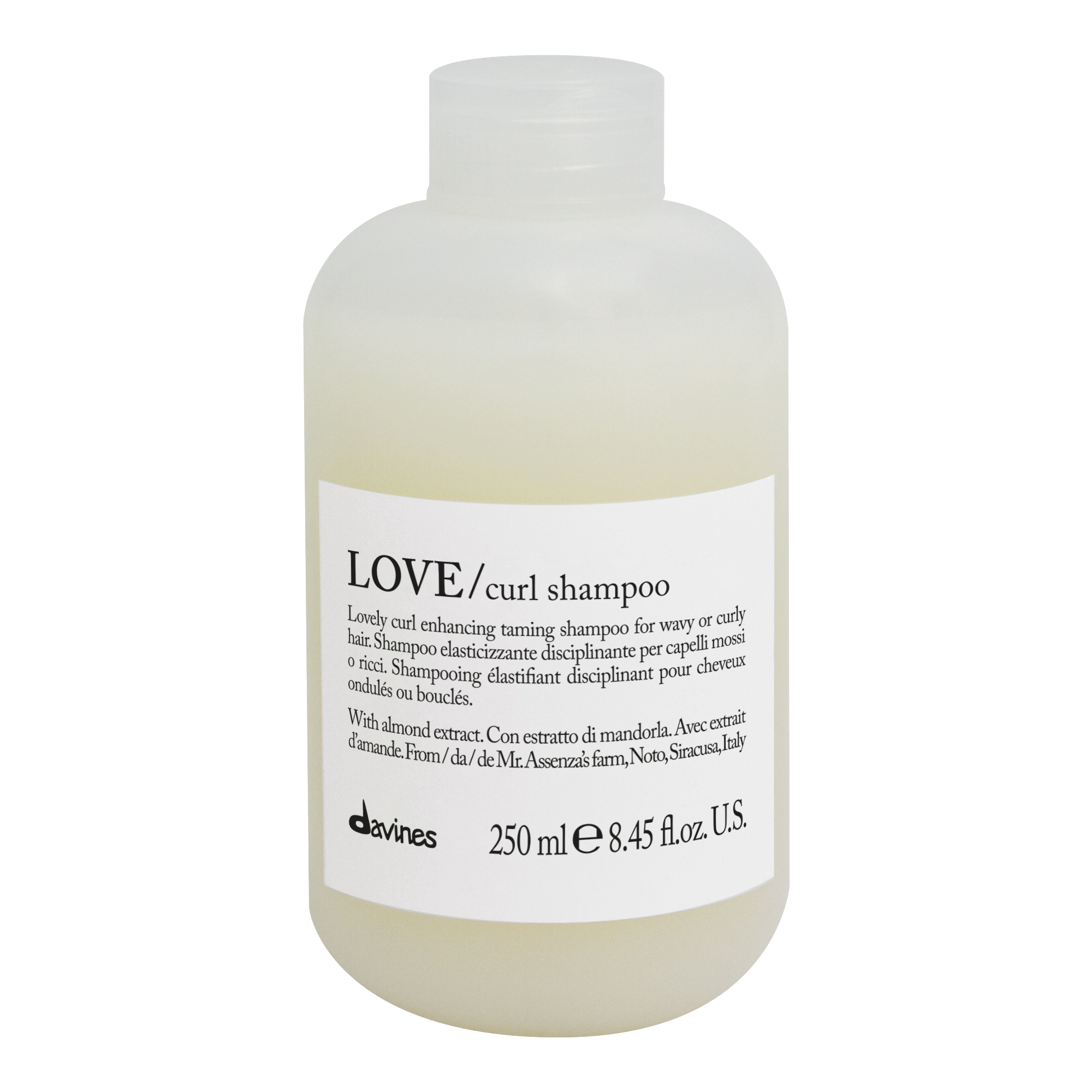 Inniheldur Noto möndlur frá Slow Food Presidia býli. Ríkt af próteinum, B vítamíni, E vítamíni, ómettuðum fitum, magnesíumi, járni, kalín, kopar og fosfórum sem hefur jákvæð áhrif á teygjanleika hársins og gefur lyftingu.