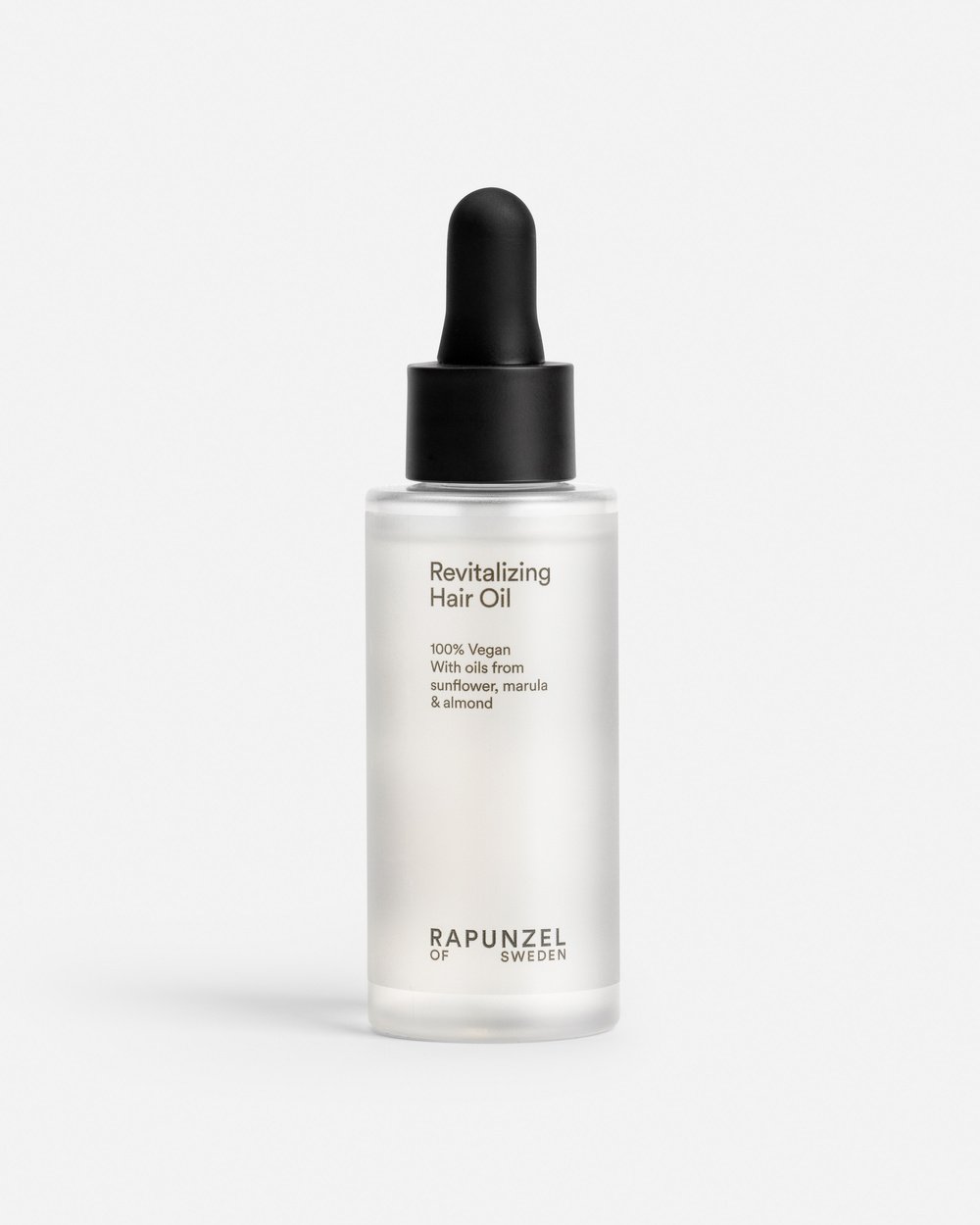 Revitalizing Hair Oil is a nourishing hair oil that reduces frizz and gives the hair a natural shine. The oil contains sunflower, marula, and almond oils which protect the hair from external damage while moisturizing and strengthening it.