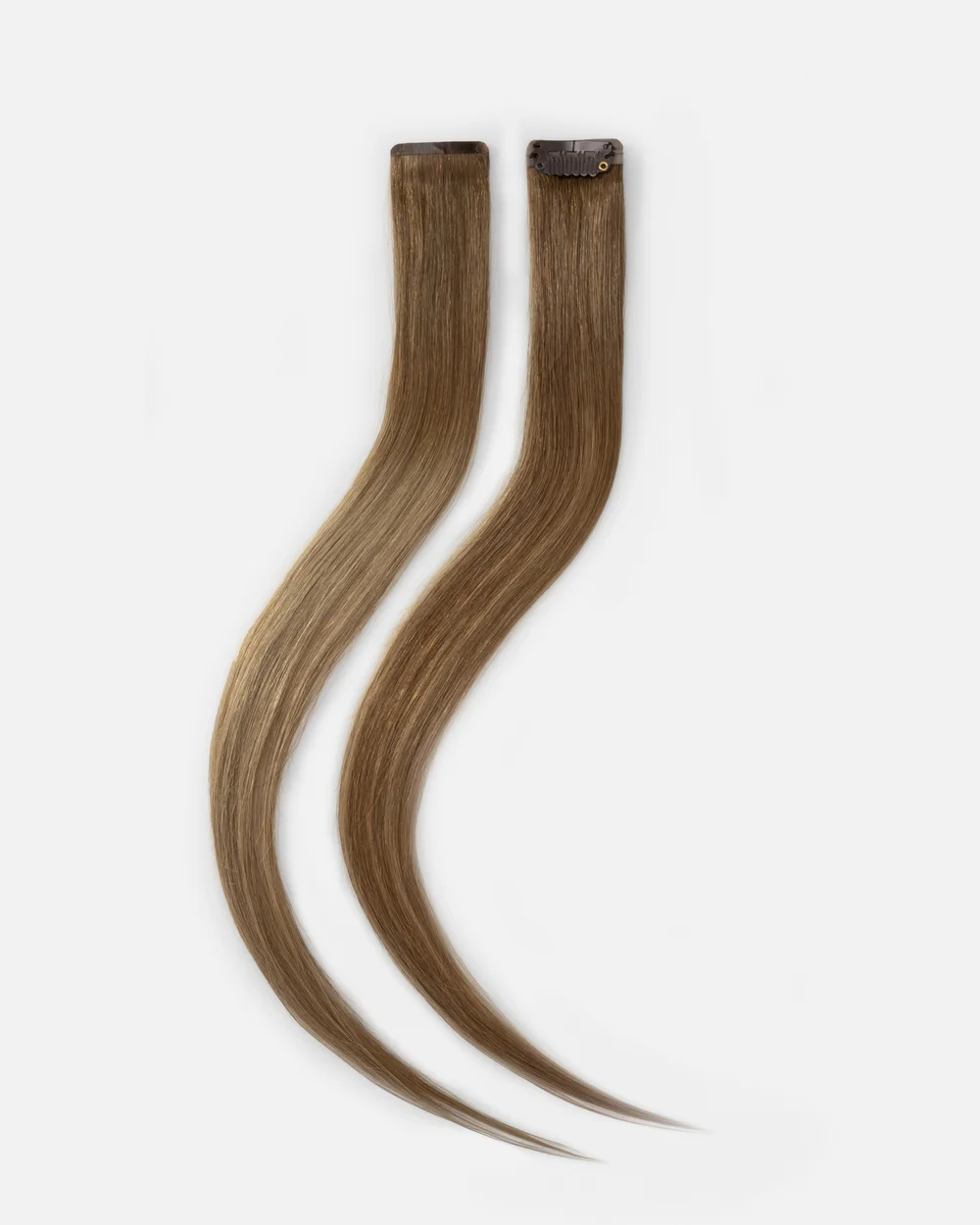 Single Invisible Clip-ins 40 cm eru hárlengingar sem hægt er að nota til að skapa tískulegar hárgreiðslur og bæta við fyllingu eða lita hreyfingu í eigið hár. Hárlengingarnar eru festar fljótt og auðveldlega með innsaumuðum klemmum. Þunnu og mjúku festingarnar á Single Invisible Clip-ins eru afar látlaus og því hægt að festa þau jafnvel á sýnilegri svæðum nálægt andlitinu án þess að þau sjáist. Hárið er ekta og hægt að móta það ásamt eigin hári til að fá náttúrulegt útlit. Single Invisible Clip-ins má nota stök eða í samsetningu með Invisible Clip-ins Light Volume og Medium Volume.